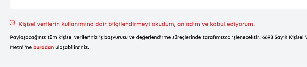 Bir formda, KVKK metnini onaylama kutucuğu. Bu formda eliniz, fare imleciniz nereye gider? Soldaki kutuya değil mi?