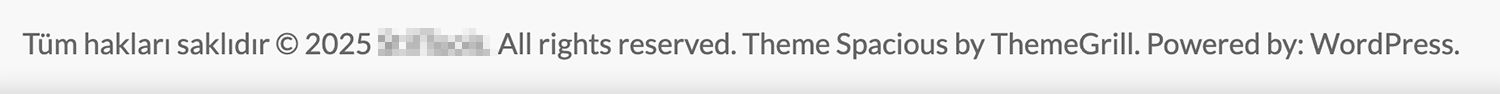 WordPress, Shopify, Wix gibi sistemlerde hazır temaları kullanarak oluşturulan web sitelerde footer bölümünde bu web sitede olduğu gibi Wordress ve tema bilgisi gibi yazıları görebiliyoruz.