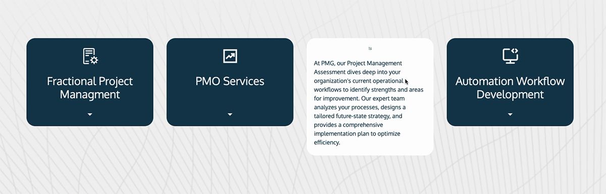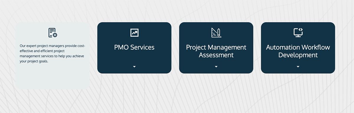 Sunulan servisler için 4 adet kutu oluşturulmuş ve başlıklar eklenmiş. Her birinin üstünde de ikonlar kullanılmış.