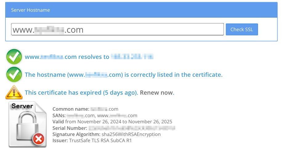 Web sitenizi sürekli ziyaret ettiğiniz tarayıcınızdaki çerezlerden dolayı SSL sertifikanızın süresi dolmasına rağmen bu uyarıyı göremeyebilirsiniz.